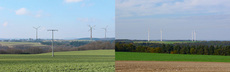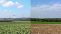 Bij ABO Energy staan we voor transparante, open communicatie in alle ontwikkelingsfasen. Indien nodig creëren we individuele projectwebsites die we regelmatig updaten. Deze pagina’s bevatten situatietekeningen, visualisaties en later foto’s van de bouwvoortgang. Hier weergegeven: een visualisatie (links) van het geplande windpark en het voltooide windpark (rechts).